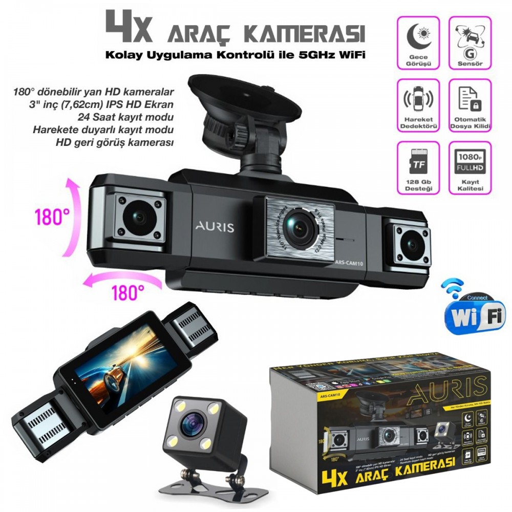 Auris CAM10 1080p Full HD 4X Ön & Arka Araç Kamera ARS-CAM10