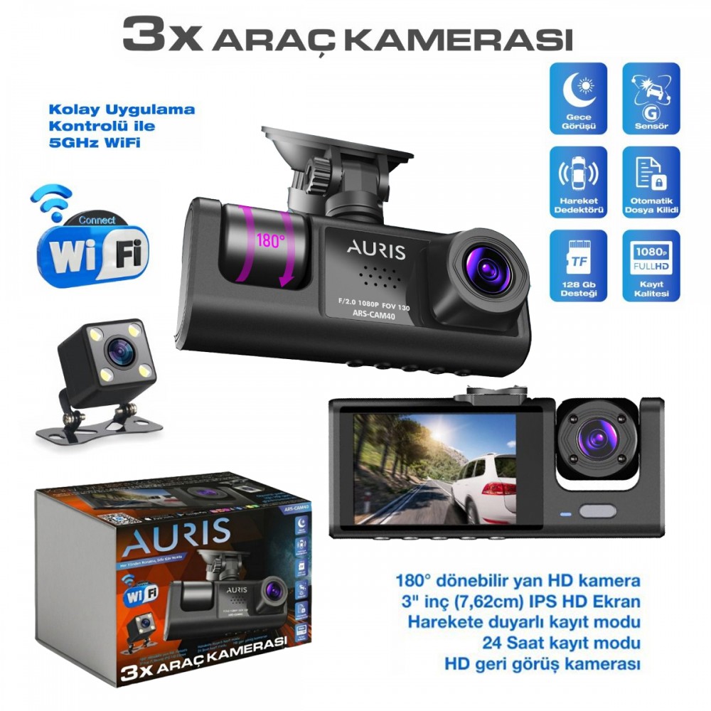 Auris CAM40 1080p Full HD 3X Ön & Arka Araç Kamera ARS-CAM40