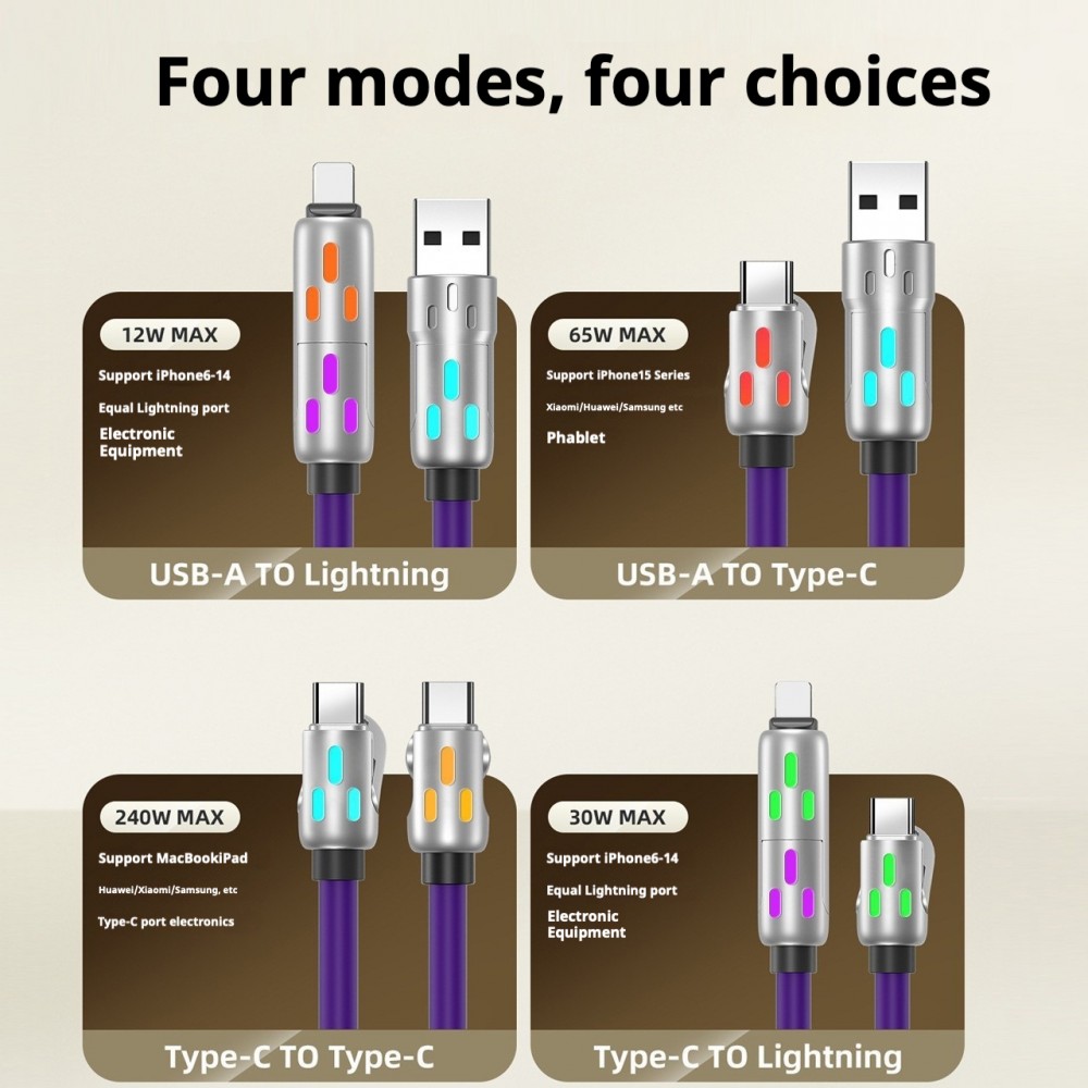 Auris CB270 4in1 USB Type-C Lightning 1.2m 4in1 RGB Hızlı Şarj Kablosu ARS-CB270