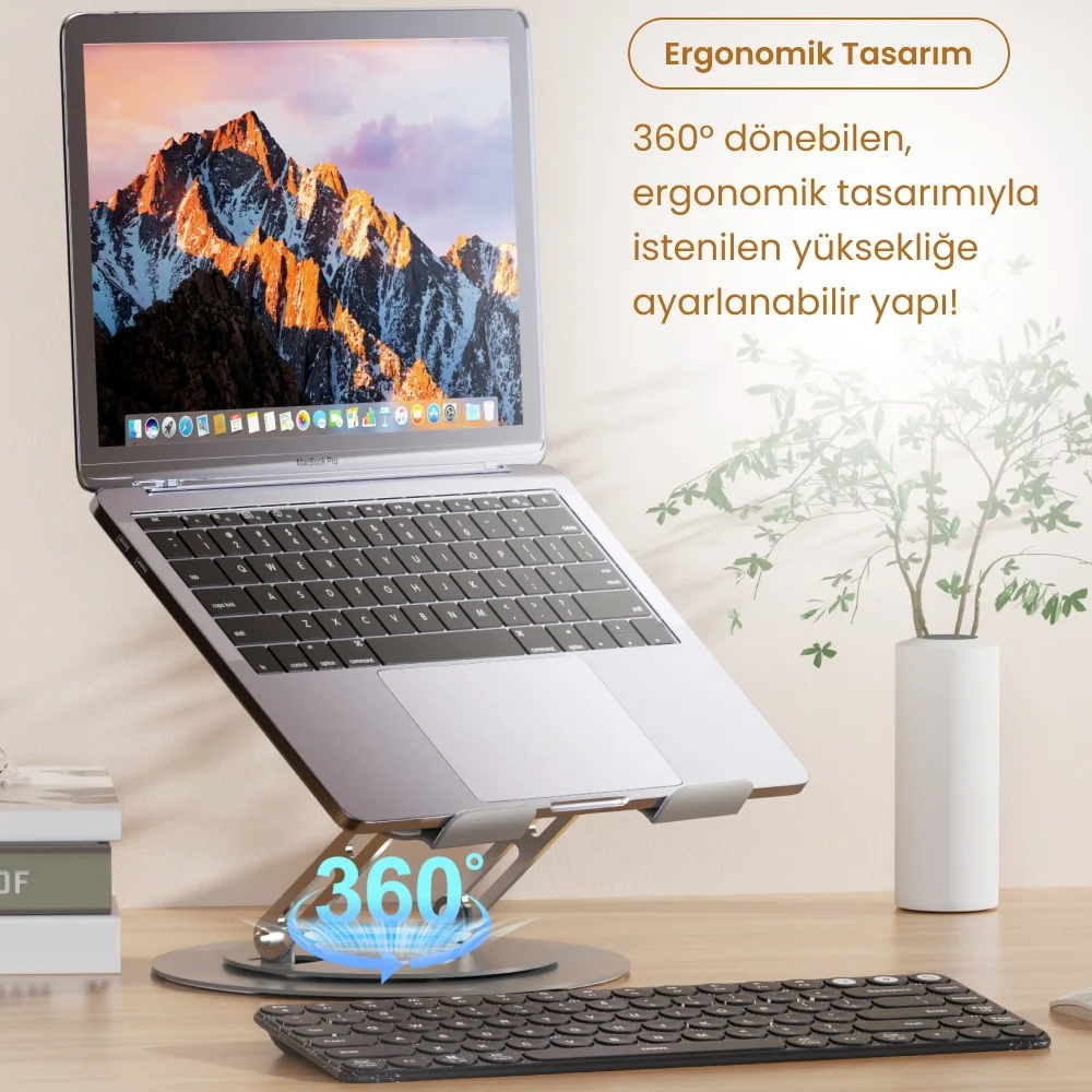 Frisby FNC-5165ST 360° Dönebilen, Soğutuculu Katlanır Alüminyum Laptop Standı (10" ~ 15.6") Ergonom..