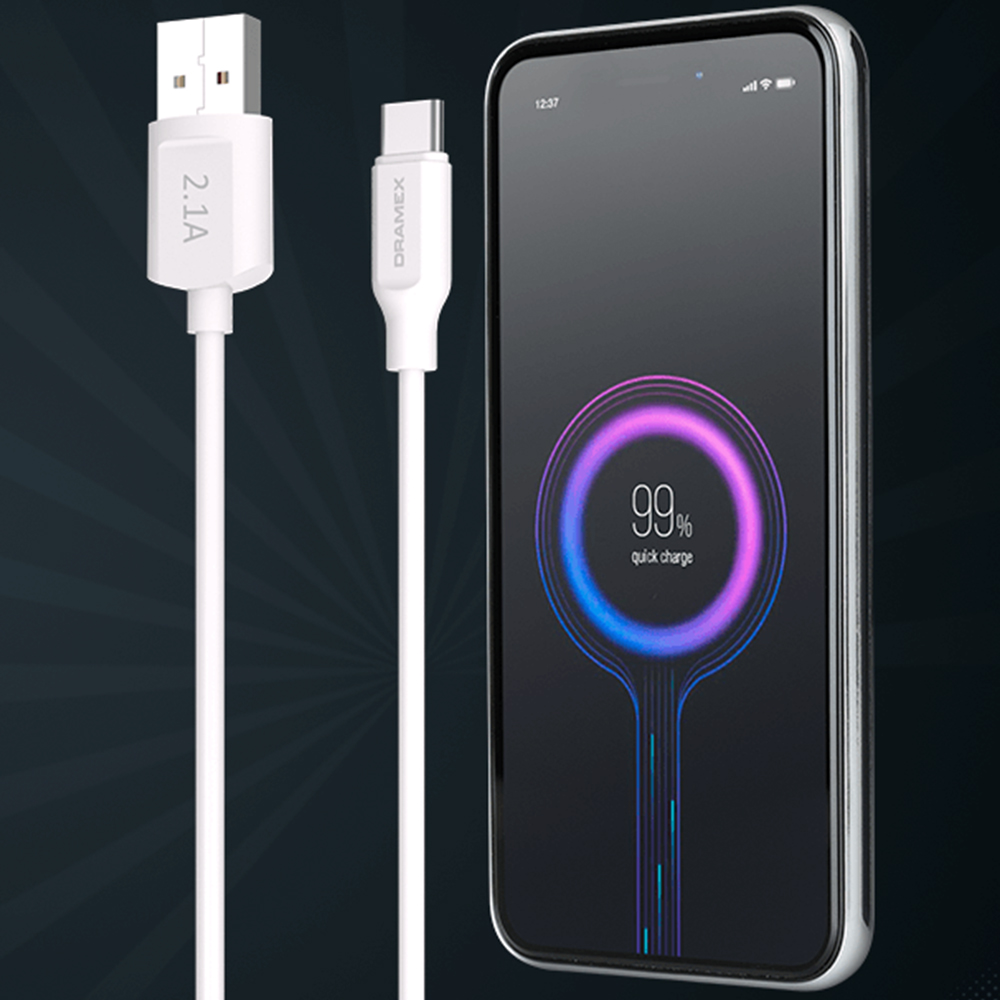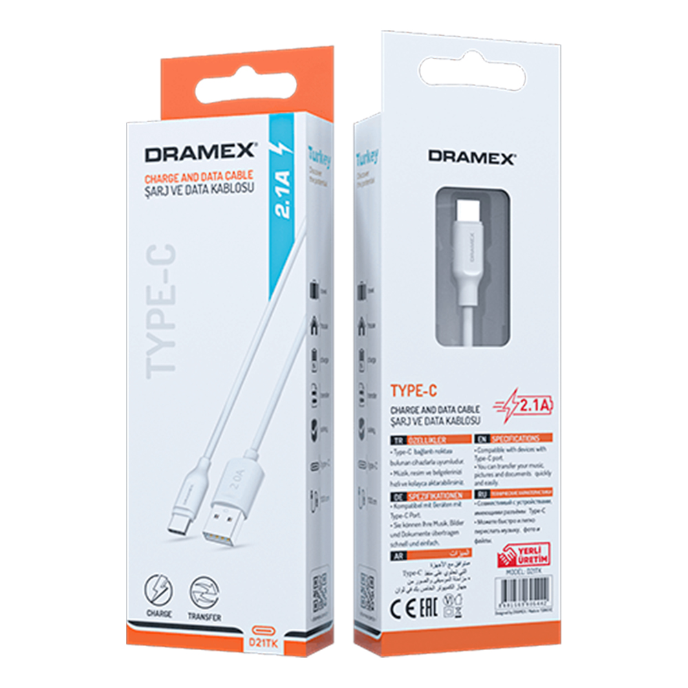 Dramex D21TK Type-C Data/Şarj Kablosu 2.1A 1mt Beyaz DRX-D21TK
