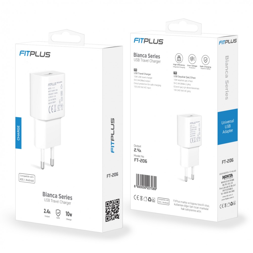 FitPlus Bianca FT-206 2.4A Seyahat Şarj Aleti Adaptör FT-206