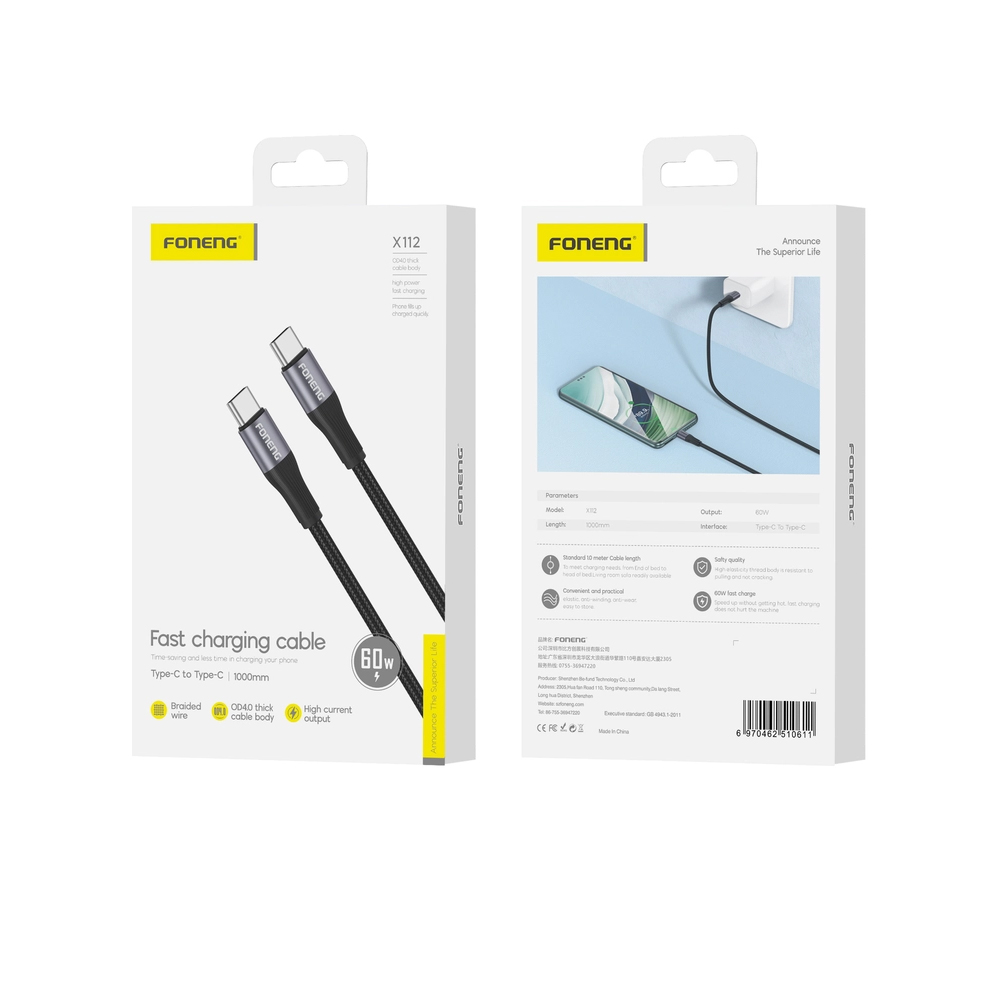 Foneng X112 60W Type-C to Type-C Örgü 1m Data ve Şarj Kablosu X112-60W