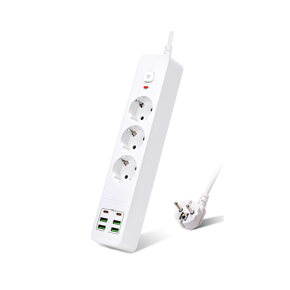 HEPU HP-H11 4x USB 2x Type-C 3lü 2mt Kablolu 18W Akım Korumalı Grup Priz 13000W HP-H11