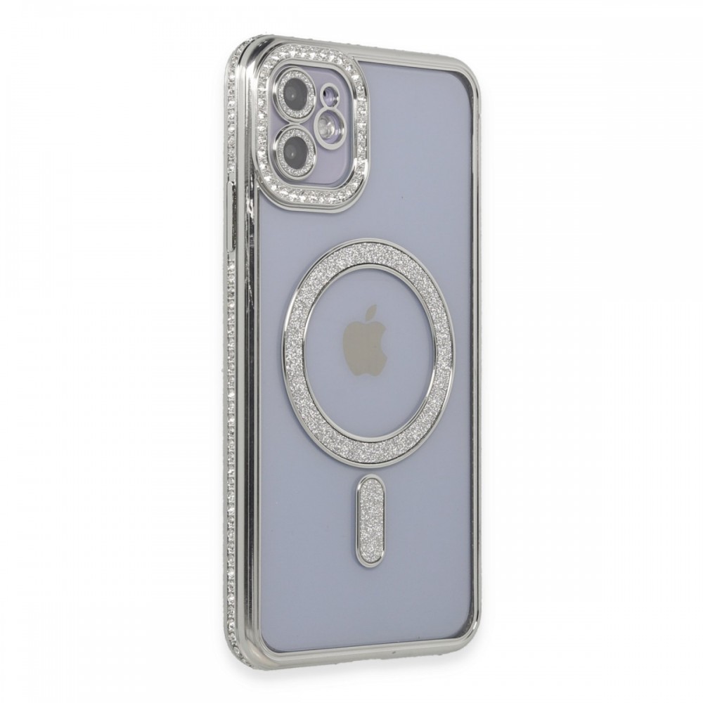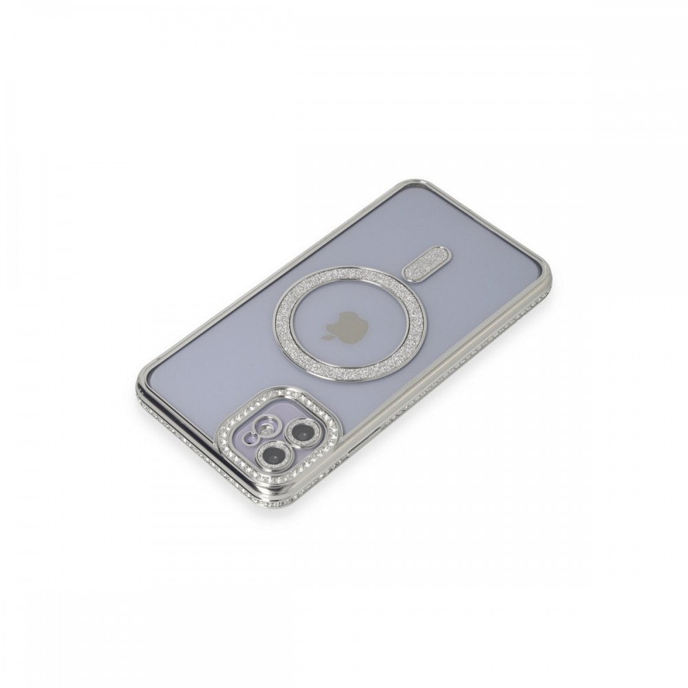 Joke Seri Magsafe Özellikli Taşlı Simli Silikon Kapak Simli ve Şık Tasarım MagSafe Uyumluluğu 360 Derece Tam Koruma Yükseltilmiş Kamera ve Ekran Koruması Parmak İzi ve Kaydırmaz Yüzey İnce ve Hafif Yapı Kablosuz Şarj Uyumlu