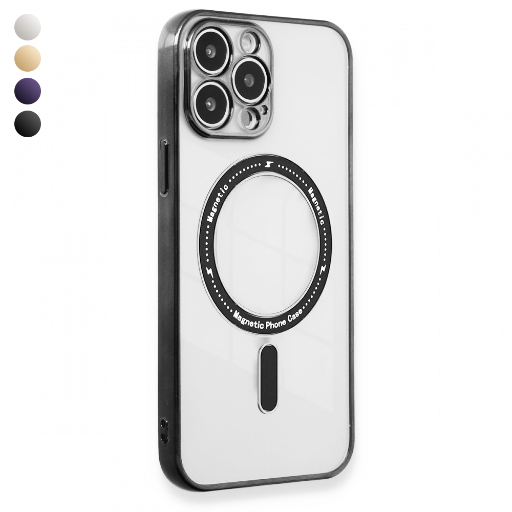 Gold Seri Magsafe Özellikli Silikon Kılıf, Kamera Detaylı Kablosuz Şarj Destekli Lazer Silikon Kapak..