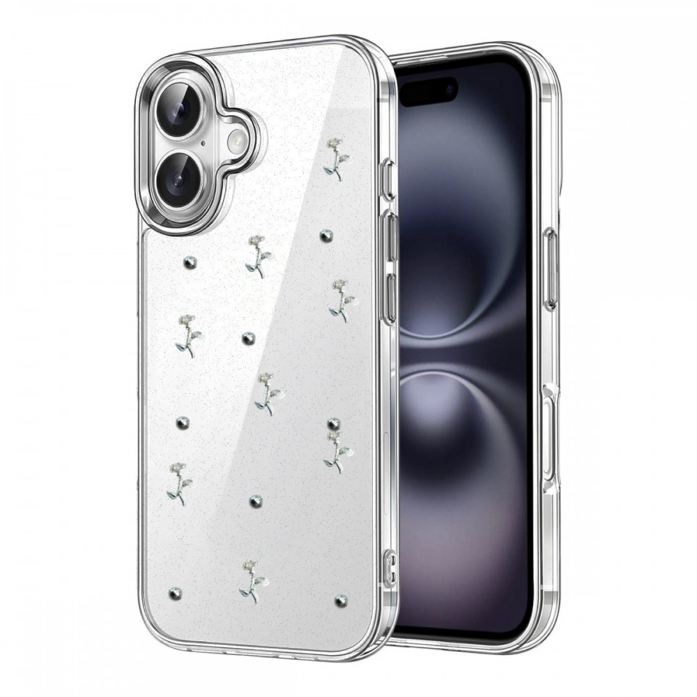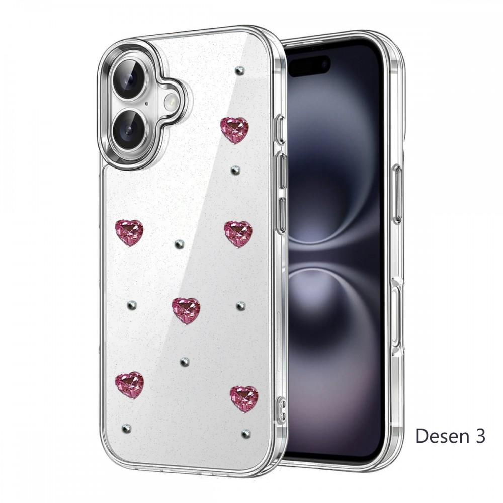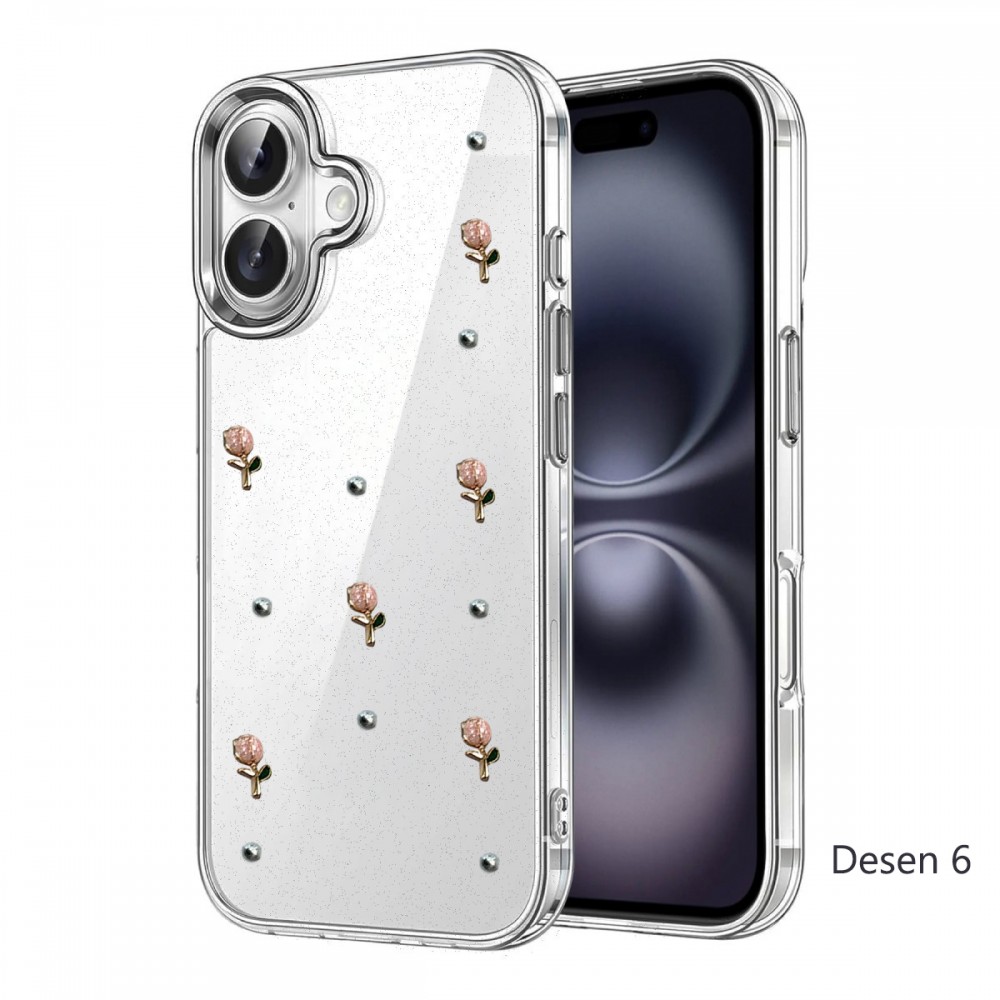 iPhone 16 Kılıf Fiyonk Desenli Şeffaf Kapak NF688