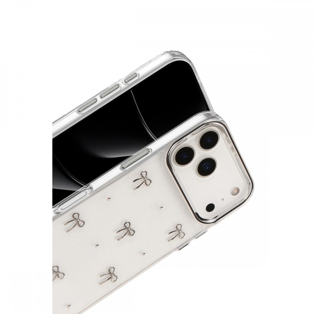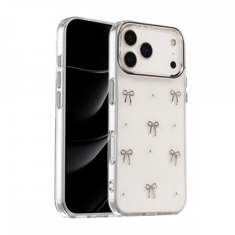 iPhone 17 Pro Kılıf Fiyonk Desenli Şeffaf Kapak NF829