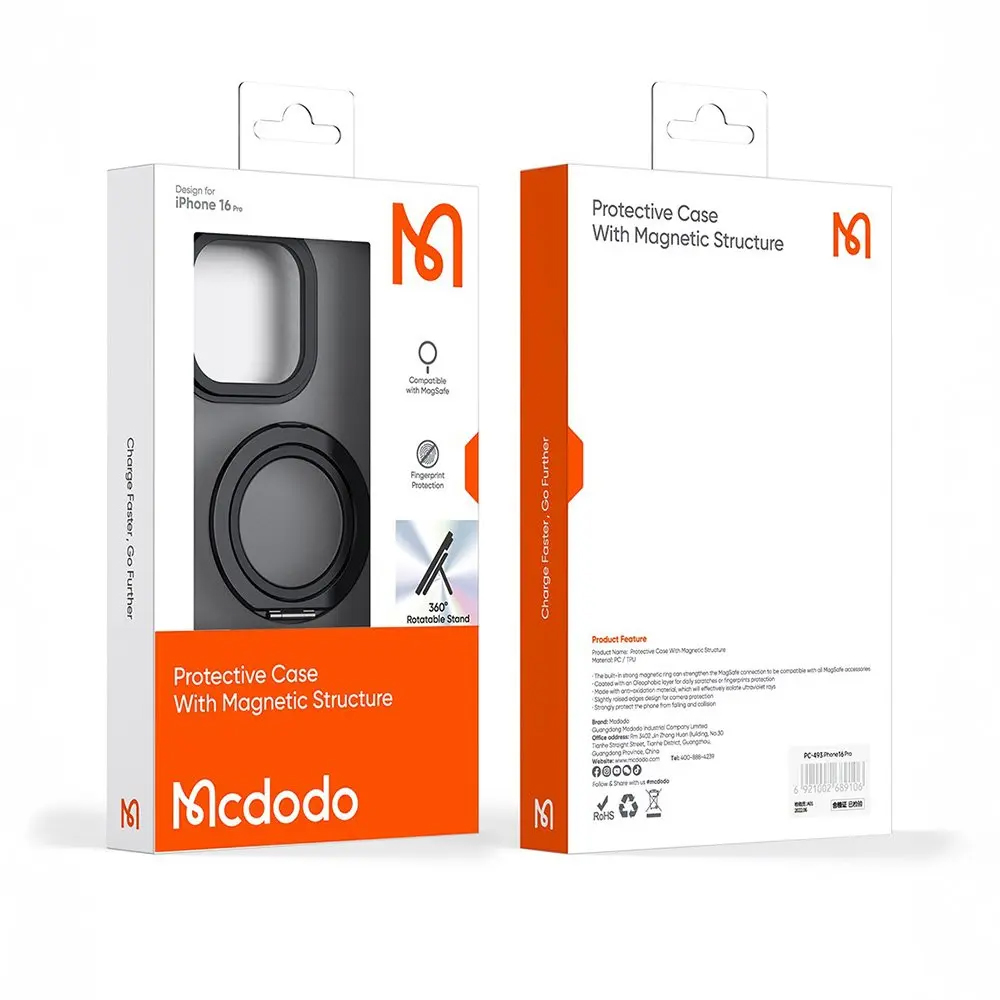 Mcdodo PC-4932 iPhone 16 Pro Kılıf Halka Standlı Kapak - Siyah MTR0538