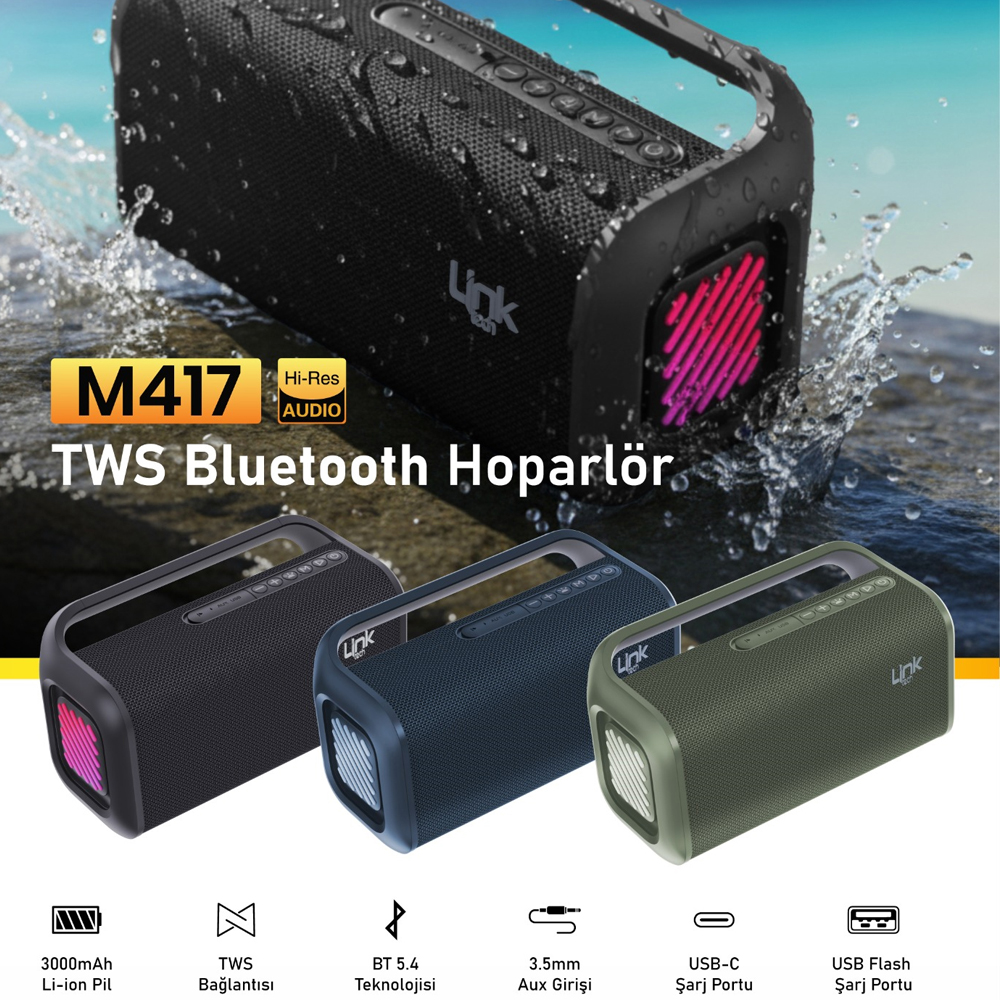 LinkTech M416 Premium IPX5 Sertifikalı Işıklı Bluetooth Hoparlör Ürüne Genel Bakış Linktech M416, ..