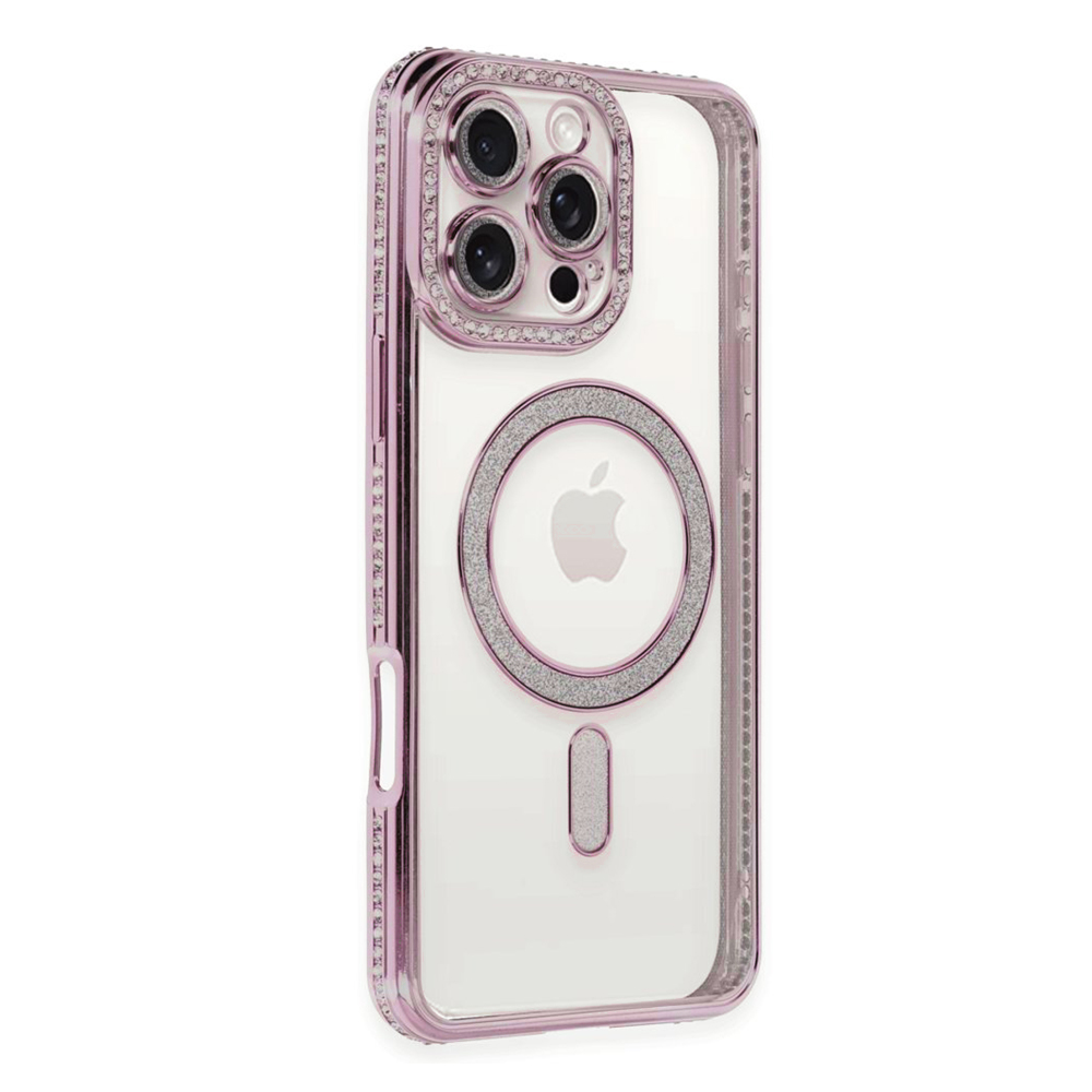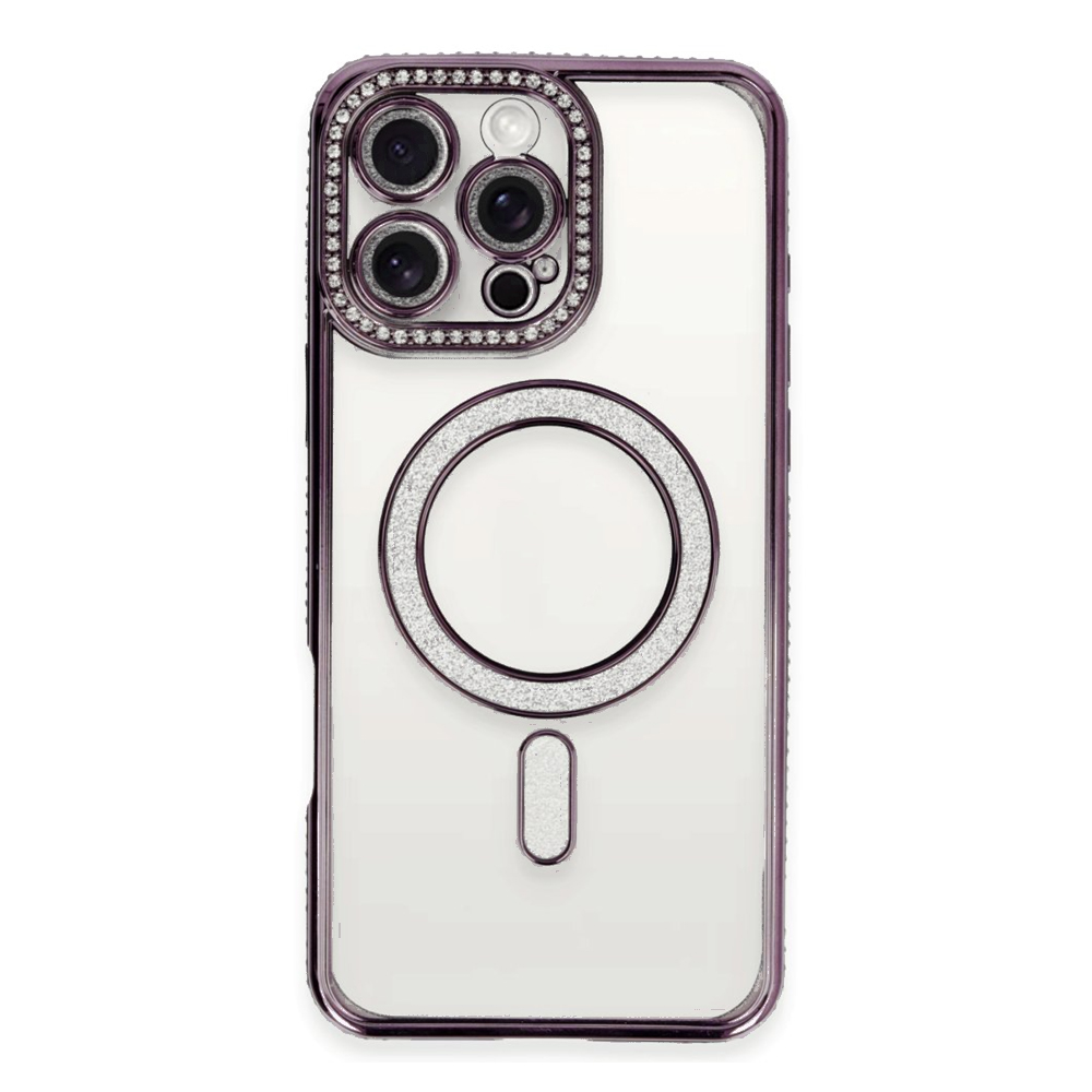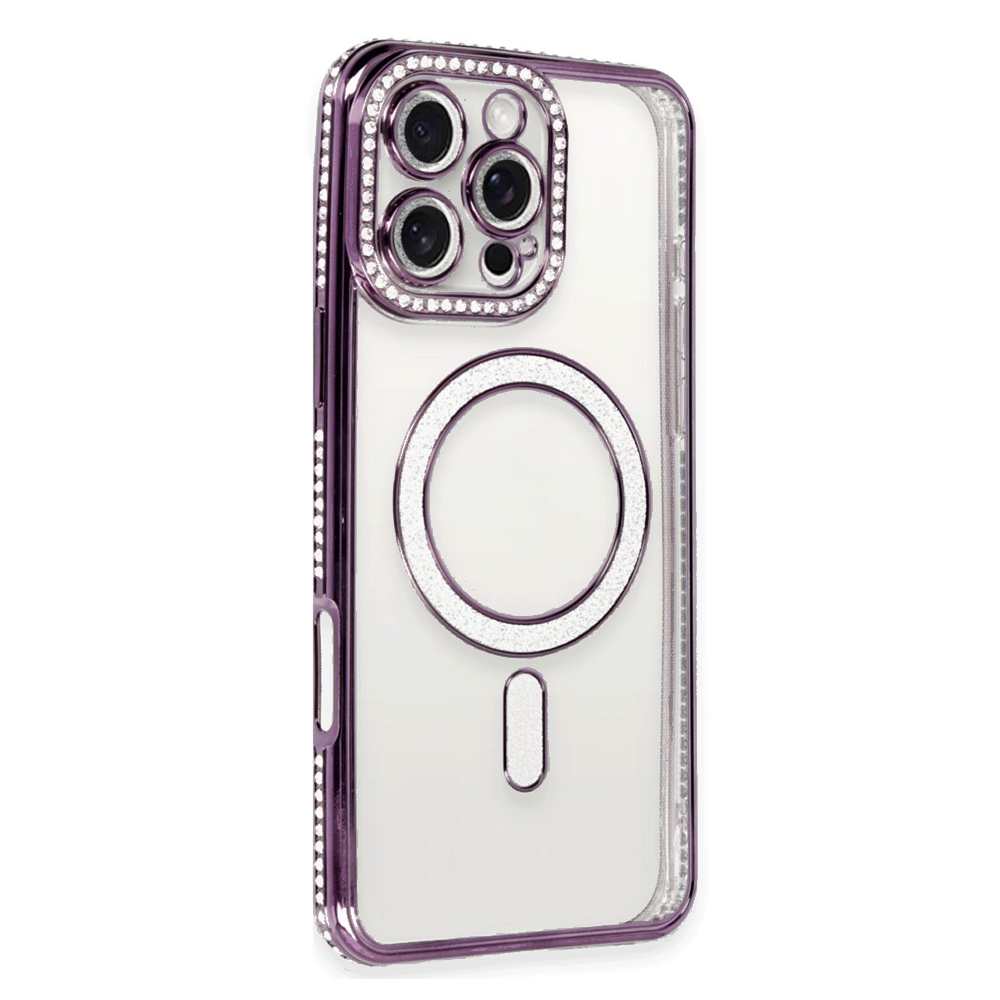 iPhone 16 Pro Kılıf Joke Seri Magsafe Özellikli Taşlı Simli Silikon Kapak NF342