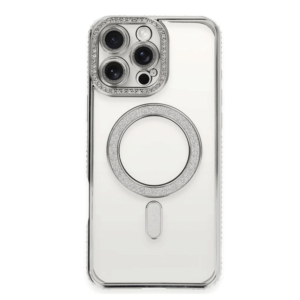 Joke Seri Magsafe Özellikli Taşlı Simli Silikon Kapak Simli ve Şık Tasarım MagSafe Uyumluluğu 360 Derece Tam Koruma Yükseltilmiş Kamera ve Ekran Koruması Parmak İzi ve Kaydırmaz Yüzey İnce ve Hafif Yapı Kablosuz Şarj Uyumlu