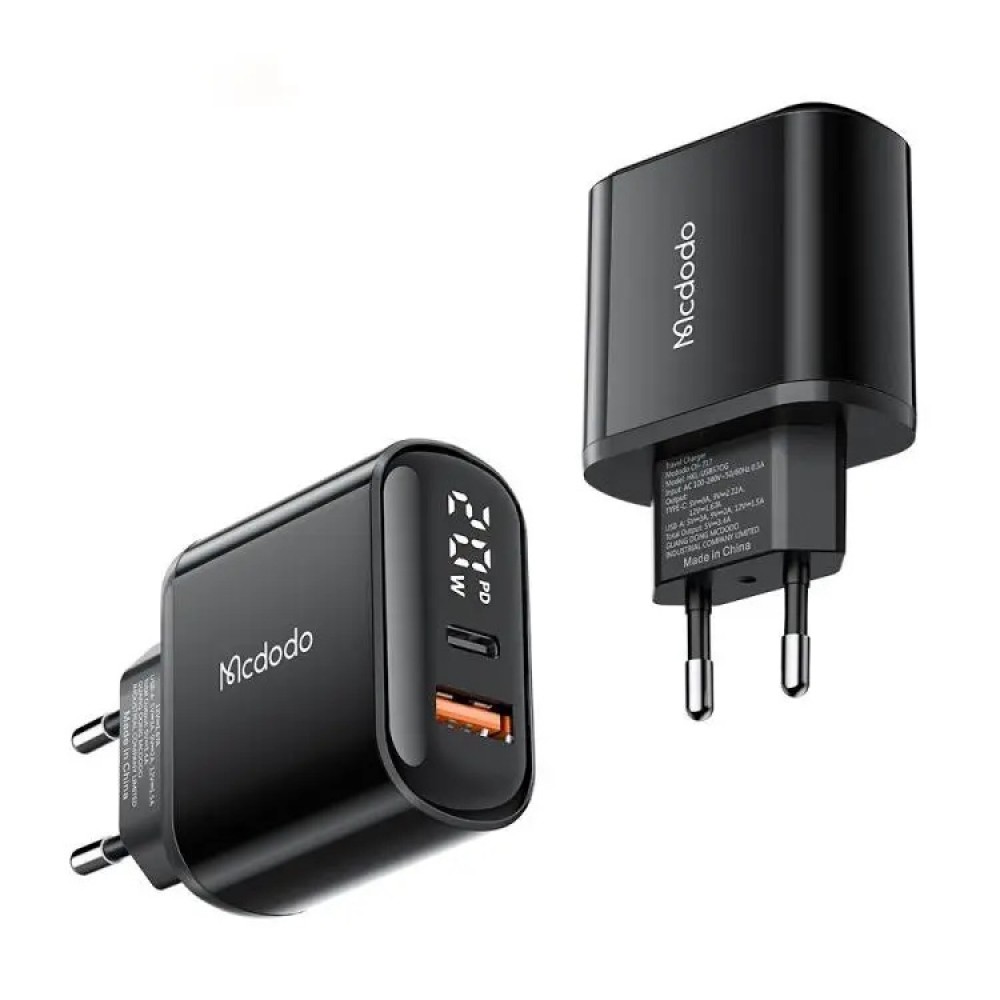 Mcdodo CH-7172 PD3 20W Çift Girişli Hızlı Şarj Adaptörü + Type-C Kablo Seti - Siyah