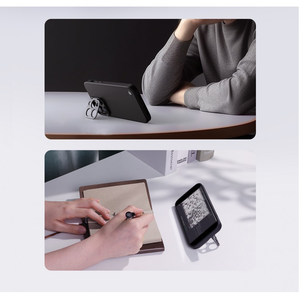 Aramid Fiberin Dayanıklılığı ve MagSafe Kolaylığı Bir Arada! Entegre Stand Hediyeli.Nillkin CarboProp Case MagSafe Uyumlu Kamera Kılıfında Standlı Aramid Fiber Kılıf - Üstün Koruma, MagSafe ve Pratiklik