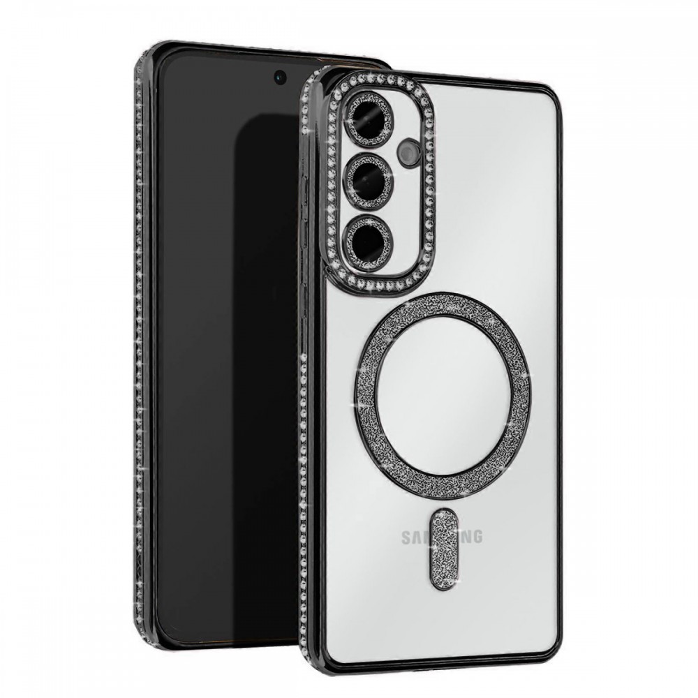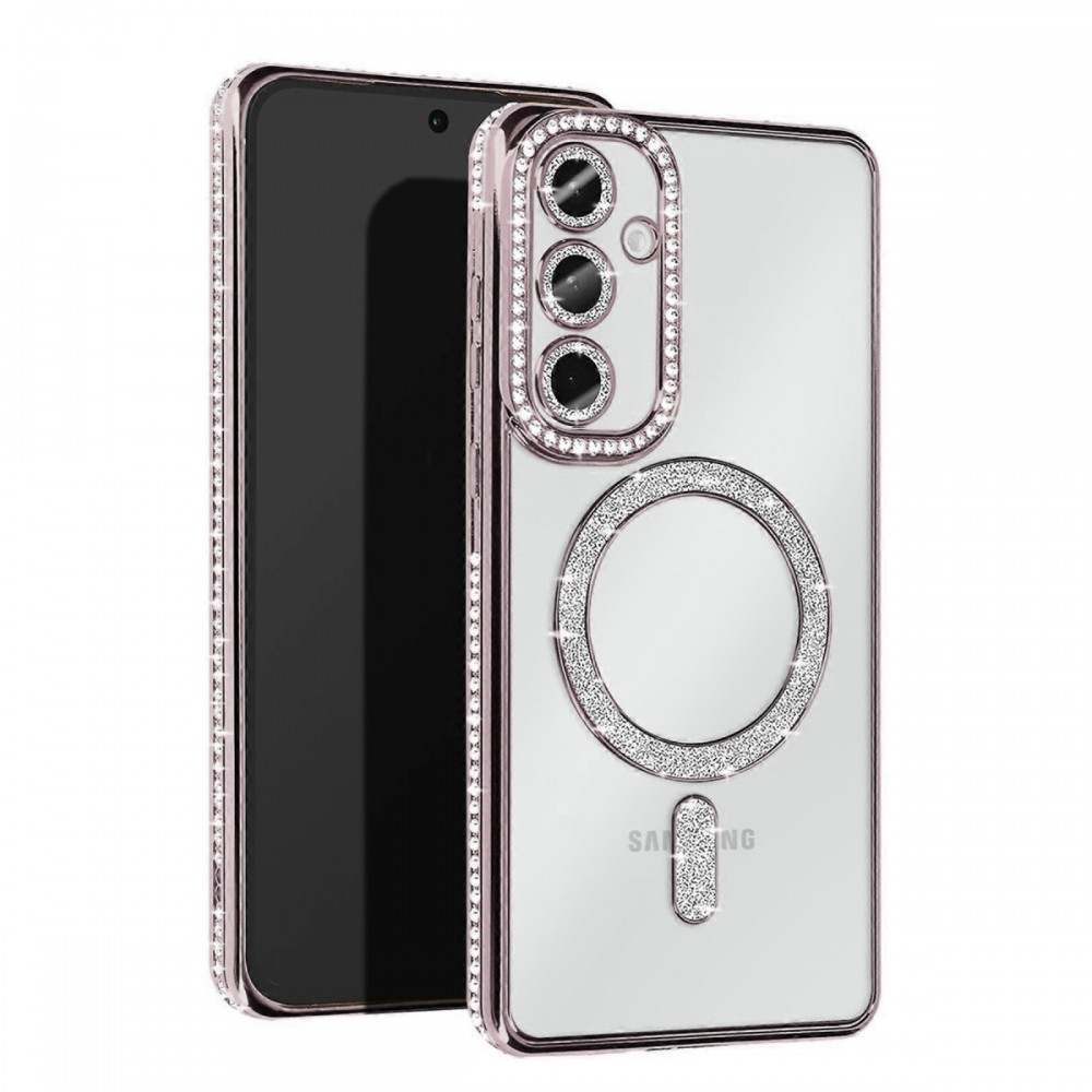 Samsung Galaxy S25 Kılıf Joke Seri Magsafe Özellikli Taşlı Simli Silikon Kapak JK232