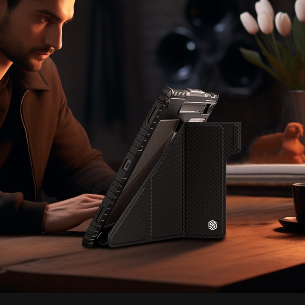 Nillkin Standlı Bumper Smart Cover, tabletiniz için hem kapsamlı koruma hem de işlevsellik sunar. Arka ve kenarları koruyan sert PC paneli ve darbe emici TPU çerçevesi ile tabletinizi çizilmelere ve darbelere karşı korurken, çok açılı stand özelliği sayesinde kullanım kolaylığı sağlar.Nillkin Standlı Bumper Smart Cover Tablet Kılıf