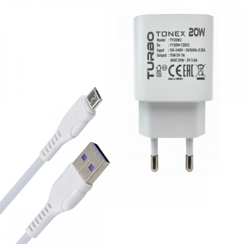 Tonex 20W 4A QC3.0 Hızlı Şarj Aleti ve Micro USB Kablo Set M20W